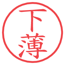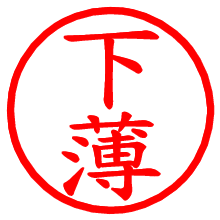 [朱肉の色]を選び、入力窓に“下薄”と入力して[生成]ボタンを押すと、印影が更新され、リンクから電子印鑑(デジタル印影)がダウンロードできます。 電子印鑑「下薄」の作り方文字表示が変なときや、文字バランスが悪いときは[字形切替]のチェックボックスでON/OFFを切り替え[生成]しなおしてください。 生成される画像は通常の印影「下薄.png」と、にじみを表現した少し太めの印影「下薄B.png」の背面透過PNG形式2種と、鮮明なPDF形式の印影「下薄.pdf」の計3種類です。 朱肉の微妙な色の違いを7色で表現しました。デフォルト(左端)は、JISが定めた朱肉の色のマンセル値(7.5R 5/14)をRGB値(217,66,54)に変換したものになっています。 「電子透かし」にチェックを入れて[生成]ボタンを押すと、タイムスタンプを電子透かしとして埋め込んだセキュアな電子印鑑が作れます。詳細は別ページの「タイムスタンプと電子透かし」でご覧ください。 下薄さんの日付印が作れます。「日付スタンプメーカー」は、社内向けの書類に利用されることの多い日付印(データ印)が無料で作れるWebアプリケーションです。中段に日付が入り、上段と下段は、ともに8文字まで文字が入ります。 ![]() 古代文字で落款印が作れます。「落款スタンプメーカー」で作品を引き立たせる落款印が作れます。