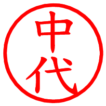 [朱肉の色]を選び、入力窓に“中代”と入力して[生成]ボタンを押すと、印影が更新され、リンクから電子印鑑(デジタル印影)がダウンロードできます。 電子印鑑「中代」の作り方文字表示が変なときや、文字バランスが悪いときは[字形切替]のチェックボックスでON/OFFを切り替え[生成]しなおしてください。 生成される画像は通常の印影「中代.png」と、にじみを表現した少し太めの印影「中代B.png」の背面透過PNG形式2種と、鮮明なPDF形式の印影「中代.pdf」の計3種類です。 朱肉の微妙な色の違いを7色で表現しました。デフォルト(左端)は、JISが定めた朱肉の色のマンセル値(7.5R 5/14)をRGB値(217,66,54)に変換したものになっています。 「電子透かし」にチェックを入れて[生成]ボタンを押すと、タイムスタンプを電子透かしとして埋め込んだセキュアな電子印鑑が作れます。詳細は別ページの「タイムスタンプと電子透かし」でご覧ください。 中代さんの日付印が作れます。「日付スタンプメーカー」は、社内向けの書類に利用されることの多い日付印(データ印)が無料で作れるWebアプリケーションです。中段に日付が入り、上段と下段は、ともに8文字まで文字が入ります。 ![]() 古代文字で落款印が作れます。「落款スタンプメーカー」で作品を引き立たせる落款印が作れます。