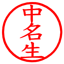 [朱肉の色]を選び、入力窓に“中名生”と入力して[生成]ボタンを押すと、印影が更新され、リンクから電子印鑑(デジタル印影)がダウンロードできます。 電子印鑑「中名生」の作り方文字表示が変なときや、文字バランスが悪いときは[字形切替]のチェックボックスでON/OFFを切り替え[生成]しなおしてください。 生成される画像は通常の印影「中名生.png」と、にじみを表現した少し太めの印影「中名生B.png」の背面透過PNG形式2種と、鮮明なPDF形式の印影「中名生.pdf」の計3種類です。 朱肉の微妙な色の違いを7色で表現しました。デフォルト(左端)は、JISが定めた朱肉の色のマンセル値(7.5R 5/14)をRGB値(217,66,54)に変換したものになっています。 「電子透かし」にチェックを入れて[生成]ボタンを押すと、タイムスタンプを電子透かしとして埋め込んだセキュアな電子印鑑が作れます。詳細は別ページの「タイムスタンプと電子透かし」でご覧ください。 中名生さんの日付印が作れます。「日付スタンプメーカー」は、社内向けの書類に利用されることの多い日付印(データ印)が無料で作れるWebアプリケーションです。中段に日付が入り、上段と下段は、ともに8文字まで文字が入ります。 ![]() 古代文字で落款印が作れます。「落款スタンプメーカー」で作品を引き立たせる落款印が作れます。