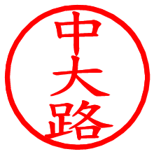 [朱肉の色]を選び、入力窓に“中大路”と入力して[生成]ボタンを押すと、印影が更新され、リンクから電子印鑑(デジタル印影)がダウンロードできます。 電子印鑑「中大路」の作り方文字表示が変なときや、文字バランスが悪いときは[字形切替]のチェックボックスでON/OFFを切り替え[生成]しなおしてください。 生成される画像は通常の印影「中大路.png」と、にじみを表現した少し太めの印影「中大路B.png」の背面透過PNG形式2種と、鮮明なPDF形式の印影「中大路.pdf」の計3種類です。 朱肉の微妙な色の違いを7色で表現しました。デフォルト(左端)は、JISが定めた朱肉の色のマンセル値(7.5R 5/14)をRGB値(217,66,54)に変換したものになっています。 「電子透かし」にチェックを入れて[生成]ボタンを押すと、タイムスタンプを電子透かしとして埋め込んだセキュアな電子印鑑が作れます。詳細は別ページの「タイムスタンプと電子透かし」でご覧ください。 中大路さんの日付印が作れます。「日付スタンプメーカー」は、社内向けの書類に利用されることの多い日付印(データ印)が無料で作れるWebアプリケーションです。中段に日付が入り、上段と下段は、ともに8文字まで文字が入ります。 ![]() 古代文字で落款印が作れます。「落款スタンプメーカー」で作品を引き立たせる落款印が作れます。