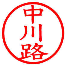[朱肉の色]を選び、入力窓に“中川路”と入力して[生成]ボタンを押すと、印影が更新され、リンクから電子印鑑(デジタル印影)がダウンロードできます。 電子印鑑「中川路」の作り方文字表示が変なときや、文字バランスが悪いときは[字形切替]のチェックボックスでON/OFFを切り替え[生成]しなおしてください。 生成される画像は通常の印影「中川路.png」と、にじみを表現した少し太めの印影「中川路B.png」の背面透過PNG形式2種と、鮮明なPDF形式の印影「中川路.pdf」の計3種類です。 朱肉の微妙な色の違いを7色で表現しました。デフォルト(左端)は、JISが定めた朱肉の色のマンセル値(7.5R 5/14)をRGB値(217,66,54)に変換したものになっています。 「電子透かし」にチェックを入れて[生成]ボタンを押すと、タイムスタンプを電子透かしとして埋め込んだセキュアな電子印鑑が作れます。詳細は別ページの「タイムスタンプと電子透かし」でご覧ください。 中川路さんの日付印が作れます。「日付スタンプメーカー」は、社内向けの書類に利用されることの多い日付印(データ印)が無料で作れるWebアプリケーションです。中段に日付が入り、上段と下段は、ともに8文字まで文字が入ります。 ![]() 古代文字で落款印が作れます。「落款スタンプメーカー」で作品を引き立たせる落款印が作れます。