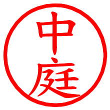 [朱肉の色]を選び、入力窓に“中庭”と入力して[生成]ボタンを押すと、印影が更新され、リンクから電子印鑑(デジタル印影)がダウンロードできます。 電子印鑑「中庭」の作り方文字表示が変なときや、文字バランスが悪いときは[字形切替]のチェックボックスでON/OFFを切り替え[生成]しなおしてください。 生成される画像は通常の印影「中庭.png」と、にじみを表現した少し太めの印影「中庭B.png」の背面透過PNG形式2種と、鮮明なPDF形式の印影「中庭.pdf」の計3種類です。 朱肉の微妙な色の違いを7色で表現しました。デフォルト(左端)は、JISが定めた朱肉の色のマンセル値(7.5R 5/14)をRGB値(217,66,54)に変換したものになっています。 「電子透かし」にチェックを入れて[生成]ボタンを押すと、タイムスタンプを電子透かしとして埋め込んだセキュアな電子印鑑が作れます。詳細は別ページの「タイムスタンプと電子透かし」でご覧ください。 中庭さんの日付印が作れます。「日付スタンプメーカー」は、社内向けの書類に利用されることの多い日付印(データ印)が無料で作れるWebアプリケーションです。中段に日付が入り、上段と下段は、ともに8文字まで文字が入ります。 ![]() 古代文字で落款印が作れます。「落款スタンプメーカー」で作品を引き立たせる落款印が作れます。