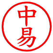 [朱肉の色]を選び、入力窓に“中易”と入力して[生成]ボタンを押すと、印影が更新され、リンクから電子印鑑(デジタル印影)がダウンロードできます。 電子印鑑「中易」の作り方文字表示が変なときや、文字バランスが悪いときは[字形切替]のチェックボックスでON/OFFを切り替え[生成]しなおしてください。 生成される画像は通常の印影「中易.png」と、にじみを表現した少し太めの印影「中易B.png」の背面透過PNG形式2種と、鮮明なPDF形式の印影「中易.pdf」の計3種類です。 朱肉の微妙な色の違いを7色で表現しました。デフォルト(左端)は、JISが定めた朱肉の色のマンセル値(7.5R 5/14)をRGB値(217,66,54)に変換したものになっています。 「電子透かし」にチェックを入れて[生成]ボタンを押すと、タイムスタンプを電子透かしとして埋め込んだセキュアな電子印鑑が作れます。詳細は別ページの「タイムスタンプと電子透かし」でご覧ください。 中易さんの日付印が作れます。「日付スタンプメーカー」は、社内向けの書類に利用されることの多い日付印(データ印)が無料で作れるWebアプリケーションです。中段に日付が入り、上段と下段は、ともに8文字まで文字が入ります。 ![]() 古代文字で落款印が作れます。「落款スタンプメーカー」で作品を引き立たせる落款印が作れます。