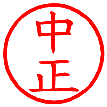 [朱肉の色]を選び、入力窓に“中正”と入力して[生成]ボタンを押すと、印影が更新され、リンクから電子印鑑(デジタル印影)がダウンロードできます。 電子印鑑「中正」の作り方文字表示が変なときや、文字バランスが悪いときは[字形切替]のチェックボックスでON/OFFを切り替え[生成]しなおしてください。 生成される画像は通常の印影「中正.png」と、にじみを表現した少し太めの印影「中正B.png」の背面透過PNG形式2種と、鮮明なPDF形式の印影「中正.pdf」の計3種類です。 朱肉の微妙な色の違いを7色で表現しました。デフォルト(左端)は、JISが定めた朱肉の色のマンセル値(7.5R 5/14)をRGB値(217,66,54)に変換したものになっています。 「電子透かし」にチェックを入れて[生成]ボタンを押すと、タイムスタンプを電子透かしとして埋め込んだセキュアな電子印鑑が作れます。詳細は別ページの「タイムスタンプと電子透かし」でご覧ください。 中正さんの日付印が作れます。「日付スタンプメーカー」は、社内向けの書類に利用されることの多い日付印(データ印)が無料で作れるWebアプリケーションです。中段に日付が入り、上段と下段は、ともに8文字まで文字が入ります。 ![]() 古代文字で落款印が作れます。「落款スタンプメーカー」で作品を引き立たせる落款印が作れます。