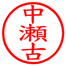 [朱肉の色]を選び、入力窓に“中瀬古”と入力して[生成]ボタンを押すと、印影が更新され、リンクから電子印鑑(デジタル印影)がダウンロードできます。 電子印鑑「中瀬古」の作り方文字表示が変なときや、文字バランスが悪いときは[字形切替]のチェックボックスでON/OFFを切り替え[生成]しなおしてください。 生成される画像は通常の印影「中瀬古.png」と、にじみを表現した少し太めの印影「中瀬古B.png」の背面透過PNG形式2種と、鮮明なPDF形式の印影「中瀬古.pdf」の計3種類です。 朱肉の微妙な色の違いを7色で表現しました。デフォルト(左端)は、JISが定めた朱肉の色のマンセル値(7.5R 5/14)をRGB値(217,66,54)に変換したものになっています。 「電子透かし」にチェックを入れて[生成]ボタンを押すと、タイムスタンプを電子透かしとして埋め込んだセキュアな電子印鑑が作れます。詳細は別ページの「タイムスタンプと電子透かし」でご覧ください。 中瀬古さんの日付印が作れます。「日付スタンプメーカー」は、社内向けの書類に利用されることの多い日付印(データ印)が無料で作れるWebアプリケーションです。中段に日付が入り、上段と下段は、ともに8文字まで文字が入ります。 ![]() 古代文字で落款印が作れます。「落款スタンプメーカー」で作品を引き立たせる落款印が作れます。