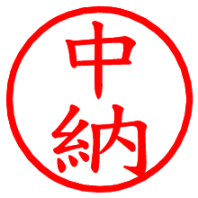 [朱肉の色]を選び、入力窓に“中納”と入力して[生成]ボタンを押すと、印影が更新され、リンクから電子印鑑(デジタル印影)がダウンロードできます。 電子印鑑「中納」の作り方文字表示が変なときや、文字バランスが悪いときは[字形切替]のチェックボックスでON/OFFを切り替え[生成]しなおしてください。 生成される画像は通常の印影「中納.png」と、にじみを表現した少し太めの印影「中納B.png」の背面透過PNG形式2種と、鮮明なPDF形式の印影「中納.pdf」の計3種類です。 朱肉の微妙な色の違いを7色で表現しました。デフォルト(左端)は、JISが定めた朱肉の色のマンセル値(7.5R 5/14)をRGB値(217,66,54)に変換したものになっています。 「電子透かし」にチェックを入れて[生成]ボタンを押すと、タイムスタンプを電子透かしとして埋め込んだセキュアな電子印鑑が作れます。詳細は別ページの「タイムスタンプと電子透かし」でご覧ください。 中納さんの日付印が作れます。「日付スタンプメーカー」は、社内向けの書類に利用されることの多い日付印(データ印)が無料で作れるWebアプリケーションです。中段に日付が入り、上段と下段は、ともに8文字まで文字が入ります。 ![]() 古代文字で落款印が作れます。「落款スタンプメーカー」で作品を引き立たせる落款印が作れます。