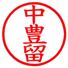 [朱肉の色]を選び、入力窓に“中豊留”と入力して[生成]ボタンを押すと、印影が更新され、リンクから電子印鑑(デジタル印影)がダウンロードできます。 電子印鑑「中豊留」の作り方文字表示が変なときや、文字バランスが悪いときは[字形切替]のチェックボックスでON/OFFを切り替え[生成]しなおしてください。 生成される画像は通常の印影「中豊留.png」と、にじみを表現した少し太めの印影「中豊留B.png」の背面透過PNG形式2種と、鮮明なPDF形式の印影「中豊留.pdf」の計3種類です。 朱肉の微妙な色の違いを7色で表現しました。デフォルト(左端)は、JISが定めた朱肉の色のマンセル値(7.5R 5/14)をRGB値(217,66,54)に変換したものになっています。 「電子透かし」にチェックを入れて[生成]ボタンを押すと、タイムスタンプを電子透かしとして埋め込んだセキュアな電子印鑑が作れます。詳細は別ページの「タイムスタンプと電子透かし」でご覧ください。 中豊留さんの日付印が作れます。「日付スタンプメーカー」は、社内向けの書類に利用されることの多い日付印(データ印)が無料で作れるWebアプリケーションです。中段に日付が入り、上段と下段は、ともに8文字まで文字が入ります。 ![]() 古代文字で落款印が作れます。「落款スタンプメーカー」で作品を引き立たせる落款印が作れます。