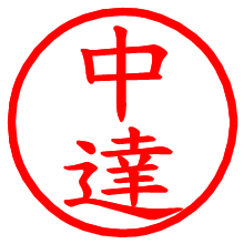 [朱肉の色]を選び、入力窓に“中達”と入力して[生成]ボタンを押すと、印影が更新され、リンクから電子印鑑(デジタル印影)がダウンロードできます。 電子印鑑「中達」の作り方文字表示が変なときや、文字バランスが悪いときは[字形切替]のチェックボックスでON/OFFを切り替え[生成]しなおしてください。 生成される画像は通常の印影「中達.png」と、にじみを表現した少し太めの印影「中達B.png」の背面透過PNG形式2種と、鮮明なPDF形式の印影「中達.pdf」の計3種類です。 朱肉の微妙な色の違いを7色で表現しました。デフォルト(左端)は、JISが定めた朱肉の色のマンセル値(7.5R 5/14)をRGB値(217,66,54)に変換したものになっています。 「電子透かし」にチェックを入れて[生成]ボタンを押すと、タイムスタンプを電子透かしとして埋め込んだセキュアな電子印鑑が作れます。詳細は別ページの「タイムスタンプと電子透かし」でご覧ください。 中達さんの日付印が作れます。「日付スタンプメーカー」は、社内向けの書類に利用されることの多い日付印(データ印)が無料で作れるWebアプリケーションです。中段に日付が入り、上段と下段は、ともに8文字まで文字が入ります。 ![]() 古代文字で落款印が作れます。「落款スタンプメーカー」で作品を引き立たせる落款印が作れます。