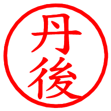 [朱肉の色]を選び、入力窓に“丹後”と入力して[生成]ボタンを押すと、印影が更新され、リンクから電子印鑑(デジタル印影)がダウンロードできます。 電子印鑑「丹後」の作り方文字表示が変なときや、文字バランスが悪いときは[字形切替]のチェックボックスでON/OFFを切り替え[生成]しなおしてください。 生成される画像は通常の印影「丹後.png」と、にじみを表現した少し太めの印影「丹後B.png」の背面透過PNG形式2種と、鮮明なPDF形式の印影「丹後.pdf」の計3種類です。 朱肉の微妙な色の違いを7色で表現しました。デフォルト(左端)は、JISが定めた朱肉の色のマンセル値(7.5R 5/14)をRGB値(217,66,54)に変換したものになっています。 「電子透かし」にチェックを入れて[生成]ボタンを押すと、タイムスタンプを電子透かしとして埋め込んだセキュアな電子印鑑が作れます。詳細は別ページの「タイムスタンプと電子透かし」でご覧ください。 丹後さんの日付印が作れます。「日付スタンプメーカー」は、社内向けの書類に利用されることの多い日付印(データ印)が無料で作れるWebアプリケーションです。中段に日付が入り、上段と下段は、ともに8文字まで文字が入ります。 ![]() 古代文字で落款印が作れます。「落款スタンプメーカー」で作品を引き立たせる落款印が作れます。