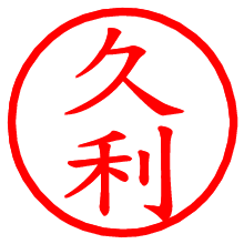 [朱肉の色]を選び、入力窓に“久利”と入力して[生成]ボタンを押すと、印影が更新され、リンクから電子印鑑(デジタル印影)がダウンロードできます。 電子印鑑「久利」の作り方文字表示が変なときや、文字バランスが悪いときは[字形切替]のチェックボックスでON/OFFを切り替え[生成]しなおしてください。 生成される画像は通常の印影「久利.png」と、にじみを表現した少し太めの印影「久利B.png」の背面透過PNG形式2種と、鮮明なPDF形式の印影「久利.pdf」の計3種類です。 朱肉の微妙な色の違いを7色で表現しました。デフォルト(左端)は、JISが定めた朱肉の色のマンセル値(7.5R 5/14)をRGB値(217,66,54)に変換したものになっています。 「電子透かし」にチェックを入れて[生成]ボタンを押すと、タイムスタンプを透かしとして埋め込んだセキュアな電子印鑑が作れます。詳細は別ページの「電子透かしとタイムスタンプ」でご覧ください。 久利さんの日付印が作れます。「日付スタンプメーカー」は、社内向けの書類に利用されることの多い日付印(データ印)が無料で作れるWebアプリケーションです。中段に日付が入り、上段と下段は、ともに8文字まで文字が入ります。 ![]() 古代文字で落款印が作れます。「落款スタンプメーカー」で作品を引き立たせる落款印が作れます。