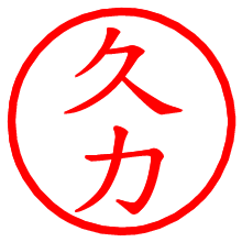[朱肉の色]を選び、入力窓に“久力”と入力して[生成]ボタンを押すと、印影が更新され、リンクから電子印鑑(デジタル印影)がダウンロードできます。 電子印鑑「久力」の作り方文字表示が変なときや、文字バランスが悪いときは[字形切替]のチェックボックスでON/OFFを切り替え[生成]しなおしてください。 生成される画像は通常の印影「久力.png」と、にじみを表現した少し太めの印影「久力B.png」の背面透過PNG形式2種と、鮮明なPDF形式の印影「久力.pdf」の計3種類です。 朱肉の微妙な色の違いを7色で表現しました。デフォルト(左端)は、JISが定めた朱肉の色のマンセル値(7.5R 5/14)をRGB値(217,66,54)に変換したものになっています。 「電子透かし」にチェックを入れて[生成]ボタンを押すと、タイムスタンプを電子透かしとして埋め込んだセキュアな電子印鑑が作れます。詳細は別ページの「タイムスタンプと電子透かし」でご覧ください。 久力さんの日付印が作れます。「日付スタンプメーカー」は、社内向けの書類に利用されることの多い日付印(データ印)が無料で作れるWebアプリケーションです。中段に日付が入り、上段と下段は、ともに8文字まで文字が入ります。 ![]() 古代文字で落款印が作れます。「落款スタンプメーカー」で作品を引き立たせる落款印が作れます。