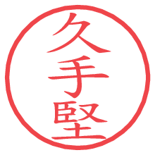 [朱肉の色]を選び、入力窓に“久手堅”と入力して[生成]ボタンを押すと、印影が更新され、リンクから電子印鑑(デジタル印影)がダウンロードできます。 電子印鑑「久手堅」の作り方文字表示が変なときや、文字バランスが悪いときは[字形切替]のチェックボックスでON/OFFを切り替え[生成]しなおしてください。 生成される画像は通常の印影「久手堅.png」と、にじみを表現した少し太めの印影「久手堅B.png」の背面透過PNG形式2種と、鮮明なPDF形式の印影「久手堅.pdf」の計3種類です。 朱肉の微妙な色の違いを7色で表現しました。デフォルト(左端)は、JISが定めた朱肉の色のマンセル値(7.5R 5/14)をRGB値(217,66,54)に変換したものになっています。 「電子透かし」にチェックを入れて[生成]ボタンを押すと、タイムスタンプを電子透かしとして埋め込んだセキュアな電子印鑑が作れます。詳細は別ページの「タイムスタンプと電子透かし」でご覧ください。 久手堅さんの日付印が作れます。「日付スタンプメーカー」は、社内向けの書類に利用されることの多い日付印(データ印)が無料で作れるWebアプリケーションです。中段に日付が入り、上段と下段は、ともに8文字まで文字が入ります。 ![]() 古代文字で落款印が作れます。「落款スタンプメーカー」で作品を引き立たせる落款印が作れます。