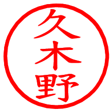 [朱肉の色]を選び、入力窓に“久木野”と入力して[生成]ボタンを押すと、印影が更新され、リンクから電子印鑑(デジタル印影)がダウンロードできます。 電子印鑑「久木野」の作り方文字表示が変なときや、文字バランスが悪いときは[字形切替]のチェックボックスでON/OFFを切り替え[生成]しなおしてください。 生成される画像は通常の印影「久木野.png」と、にじみを表現した少し太めの印影「久木野B.png」の背面透過PNG形式2種と、鮮明なPDF形式の印影「久木野.pdf」の計3種類です。 朱肉の微妙な色の違いを7色で表現しました。デフォルト(左端)は、JISが定めた朱肉の色のマンセル値(7.5R 5/14)をRGB値(217,66,54)に変換したものになっています。 「電子透かし」にチェックを入れて[生成]ボタンを押すと、タイムスタンプを電子透かしとして埋め込んだセキュアな電子印鑑が作れます。詳細は別ページの「タイムスタンプと電子透かし」でご覧ください。 久木野さんの日付印が作れます。「日付スタンプメーカー」は、社内向けの書類に利用されることの多い日付印(データ印)が無料で作れるWebアプリケーションです。中段に日付が入り、上段と下段は、ともに8文字まで文字が入ります。 ![]() 古代文字で落款印が作れます。「落款スタンプメーカー」で作品を引き立たせる落款印が作れます。