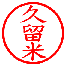 [朱肉の色]を選び、入力窓に“久留米”と入力して[生成]ボタンを押すと、印影が更新され、リンクから電子印鑑(デジタル印影)がダウンロードできます。 電子印鑑「久留米」の作り方文字表示が変なときや、文字バランスが悪いときは[字形切替]のチェックボックスでON/OFFを切り替え[生成]しなおしてください。 生成される画像は通常の印影「久留米.png」と、にじみを表現した少し太めの印影「久留米B.png」の背面透過PNG形式2種と、鮮明なPDF形式の印影「久留米.pdf」の計3種類です。 朱肉の微妙な色の違いを7色で表現しました。デフォルト(左端)は、JISが定めた朱肉の色のマンセル値(7.5R 5/14)をRGB値(217,66,54)に変換したものになっています。 「電子透かし」にチェックを入れて[生成]ボタンを押すと、タイムスタンプを電子透かしとして埋め込んだセキュアな電子印鑑が作れます。詳細は別ページの「タイムスタンプと電子透かし」でご覧ください。 久留米さんの日付印が作れます。「日付スタンプメーカー」は、社内向けの書類に利用されることの多い日付印(データ印)が無料で作れるWebアプリケーションです。中段に日付が入り、上段と下段は、ともに8文字まで文字が入ります。 ![]() 古代文字で落款印が作れます。「落款スタンプメーカー」で作品を引き立たせる落款印が作れます。