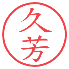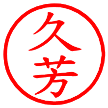 [朱肉の色]を選び、入力窓に“久芳”と入力して[生成]ボタンを押すと、印影が更新され、リンクから電子印鑑(デジタル印影)がダウンロードできます。 電子印鑑「久芳」の作り方文字表示が変なときや、文字バランスが悪いときは[字形切替]のチェックボックスでON/OFFを切り替え[生成]しなおしてください。 生成される画像は通常の印影「久芳.png」と、にじみを表現した少し太めの印影「久芳B.png」の背面透過PNG形式2種と、鮮明なPDF形式の印影「久芳.pdf」の計3種類です。 朱肉の微妙な色の違いを7色で表現しました。デフォルト(左端)は、JISが定めた朱肉の色のマンセル値(7.5R 5/14)をRGB値(217,66,54)に変換したものになっています。 「電子透かし」にチェックを入れて[生成]ボタンを押すと、タイムスタンプを電子透かしとして埋め込んだセキュアな電子印鑑が作れます。詳細は別ページの「タイムスタンプと電子透かし」でご覧ください。 久芳さんの日付印が作れます。「日付スタンプメーカー」は、社内向けの書類に利用されることの多い日付印(データ印)が無料で作れるWebアプリケーションです。中段に日付が入り、上段と下段は、ともに8文字まで文字が入ります。 ![]() 古代文字で落款印が作れます。「落款スタンプメーカー」で作品を引き立たせる落款印が作れます。