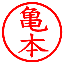 [朱肉の色]を選び、入力窓に“亀本”と入力して[生成]ボタンを押すと、印影が更新され、リンクから電子印鑑(デジタル印影)がダウンロードできます。 電子印鑑「亀本」の作り方文字表示が変なときや、文字バランスが悪いときは[字形切替]のチェックボックスでON/OFFを切り替え[生成]しなおしてください。 生成される画像は通常の印影「亀本.png」と、にじみを表現した少し太めの印影「亀本B.png」の背面透過PNG形式2種と、鮮明なPDF形式の印影「亀本.pdf」の計3種類です。 朱肉の微妙な色の違いを7色で表現しました。デフォルト(左端)は、JISが定めた朱肉の色のマンセル値(7.5R 5/14)をRGB値(217,66,54)に変換したものになっています。 「電子透かし」にチェックを入れて[生成]ボタンを押すと、タイムスタンプを電子透かしとして埋め込んだセキュアな電子印鑑が作れます。詳細は別ページの「タイムスタンプと電子透かし」でご覧ください。 亀本さんの日付印が作れます。「日付スタンプメーカー」は、社内向けの書類に利用されることの多い日付印(データ印)が無料で作れるWebアプリケーションです。中段に日付が入り、上段と下段は、ともに8文字まで文字が入ります。 ![]() 古代文字で落款印が作れます。「落款スタンプメーカー」で作品を引き立たせる落款印が作れます。