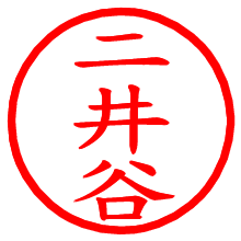 [朱肉の色]を選び、入力窓に“二井谷”と入力して[生成]ボタンを押すと、印影が更新され、リンクから電子印鑑(デジタル印影)がダウンロードできます。 電子印鑑「二井谷」の作り方文字表示が変なときや、文字バランスが悪いときは[字形切替]のチェックボックスでON/OFFを切り替え[生成]しなおしてください。 生成される画像は通常の印影「二井谷.png」と、にじみを表現した少し太めの印影「二井谷B.png」の背面透過PNG形式2種と、鮮明なPDF形式の印影「二井谷.pdf」の計3種類です。 朱肉の微妙な色の違いを7色で表現しました。デフォルト(左端)は、JISが定めた朱肉の色のマンセル値(7.5R 5/14)をRGB値(217,66,54)に変換したものになっています。 「電子透かし」にチェックを入れて[生成]ボタンを押すと、タイムスタンプを電子透かしとして埋め込んだセキュアな電子印鑑が作れます。詳細は別ページの「タイムスタンプと電子透かし」でご覧ください。 二井谷さんの日付印が作れます。「日付スタンプメーカー」は、社内向けの書類に利用されることの多い日付印(データ印)が無料で作れるWebアプリケーションです。中段に日付が入り、上段と下段は、ともに8文字まで文字が入ります。 ![]() 古代文字で落款印が作れます。「落款スタンプメーカー」で作品を引き立たせる落款印が作れます。