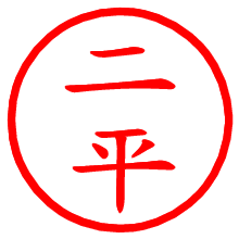 [朱肉の色]を選び、入力窓に“二平”と入力して[生成]ボタンを押すと、印影が更新され、リンクから電子印鑑(デジタル印影)がダウンロードできます。 電子印鑑「二平」の作り方文字表示が変なときや、文字バランスが悪いときは[字形切替]のチェックボックスでON/OFFを切り替え[生成]しなおしてください。 生成される画像は通常の印影「二平.png」と、にじみを表現した少し太めの印影「二平B.png」の背面透過PNG形式2種と、鮮明なPDF形式の印影「二平.pdf」の計3種類です。 朱肉の微妙な色の違いを7色で表現しました。デフォルト(左端)は、JISが定めた朱肉の色のマンセル値(7.5R 5/14)をRGB値(217,66,54)に変換したものになっています。 「電子透かし」にチェックを入れて[生成]ボタンを押すと、タイムスタンプを電子透かしとして埋め込んだセキュアな電子印鑑が作れます。詳細は別ページの「タイムスタンプと電子透かし」でご覧ください。 二平さんの日付印が作れます。「日付スタンプメーカー」は、社内向けの書類に利用されることの多い日付印(データ印)が無料で作れるWebアプリケーションです。中段に日付が入り、上段と下段は、ともに8文字まで文字が入ります。 ![]() 古代文字で落款印が作れます。「落款スタンプメーカー」で作品を引き立たせる落款印が作れます。