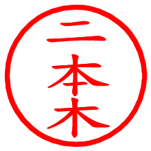 [朱肉の色]を選び、入力窓に“二本木”と入力して[生成]ボタンを押すと、印影が更新され、リンクから電子印鑑(デジタル印影)がダウンロードできます。 電子印鑑「二本木」の作り方文字表示が変なときや、文字バランスが悪いときは[字形切替]のチェックボックスでON/OFFを切り替え[生成]しなおしてください。 生成される画像は通常の印影「二本木.png」と、にじみを表現した少し太めの印影「二本木B.png」の背面透過PNG形式2種と、鮮明なPDF形式の印影「二本木.pdf」の計3種類です。 朱肉の微妙な色の違いを7色で表現しました。デフォルト(左端)は、JISが定めた朱肉の色のマンセル値(7.5R 5/14)をRGB値(217,66,54)に変換したものになっています。 「電子透かし」にチェックを入れて[生成]ボタンを押すと、タイムスタンプを電子透かしとして埋め込んだセキュアな電子印鑑が作れます。詳細は別ページの「タイムスタンプと電子透かし」でご覧ください。 二本木さんの日付印が作れます。「日付スタンプメーカー」は、社内向けの書類に利用されることの多い日付印(データ印)が無料で作れるWebアプリケーションです。中段に日付が入り、上段と下段は、ともに8文字まで文字が入ります。 ![]() 古代文字で落款印が作れます。「落款スタンプメーカー」で作品を引き立たせる落款印が作れます。