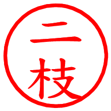 [朱肉の色]を選び、入力窓に“二枝”と入力して[生成]ボタンを押すと、印影が更新され、リンクから電子印鑑(デジタル印影)がダウンロードできます。 電子印鑑「二枝」の作り方文字表示が変なときや、文字バランスが悪いときは[字形切替]のチェックボックスでON/OFFを切り替え[生成]しなおしてください。 生成される画像は通常の印影「二枝.png」と、にじみを表現した少し太めの印影「二枝B.png」の背面透過PNG形式2種と、鮮明なPDF形式の印影「二枝.pdf」の計3種類です。 朱肉の微妙な色の違いを7色で表現しました。デフォルト(左端)は、JISが定めた朱肉の色のマンセル値(7.5R 5/14)をRGB値(217,66,54)に変換したものになっています。 「電子透かし」にチェックを入れて[生成]ボタンを押すと、タイムスタンプを電子透かしとして埋め込んだセキュアな電子印鑑が作れます。詳細は別ページの「タイムスタンプと電子透かし」でご覧ください。 二枝さんの日付印が作れます。「日付スタンプメーカー」は、社内向けの書類に利用されることの多い日付印(データ印)が無料で作れるWebアプリケーションです。中段に日付が入り、上段と下段は、ともに8文字まで文字が入ります。 ![]() 古代文字で落款印が作れます。「落款スタンプメーカー」で作品を引き立たせる落款印が作れます。