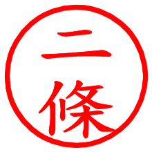 [朱肉の色]を選び、入力窓に“二條”と入力して[生成]ボタンを押すと、印影が更新され、リンクから電子印鑑(デジタル印影)がダウンロードできます。 電子印鑑「二條」の作り方文字表示が変なときや、文字バランスが悪いときは[字形切替]のチェックボックスでON/OFFを切り替え[生成]しなおしてください。 生成される画像は通常の印影「二條.png」と、にじみを表現した少し太めの印影「二條B.png」の背面透過PNG形式2種と、鮮明なPDF形式の印影「二條.pdf」の計3種類です。 朱肉の微妙な色の違いを7色で表現しました。デフォルト(左端)は、JISが定めた朱肉の色のマンセル値(7.5R 5/14)をRGB値(217,66,54)に変換したものになっています。 「電子透かし」にチェックを入れて[生成]ボタンを押すと、タイムスタンプを電子透かしとして埋め込んだセキュアな電子印鑑が作れます。詳細は別ページの「タイムスタンプと電子透かし」でご覧ください。 二條さんの日付印が作れます。「日付スタンプメーカー」は、社内向けの書類に利用されることの多い日付印(データ印)が無料で作れるWebアプリケーションです。中段に日付が入り、上段と下段は、ともに8文字まで文字が入ります。 ![]() 古代文字で落款印が作れます。「落款スタンプメーカー」で作品を引き立たせる落款印が作れます。