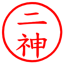 [朱肉の色]を選び、入力窓に“二神”と入力して[生成]ボタンを押すと、印影が更新され、リンクから電子印鑑(デジタル印影)がダウンロードできます。 電子印鑑「二神」の作り方文字表示が変なときや、文字バランスが悪いときは[字形切替]のチェックボックスでON/OFFを切り替え[生成]しなおしてください。 生成される画像は通常の印影「二神.png」と、にじみを表現した少し太めの印影「二神B.png」の背面透過PNG形式2種と、鮮明なPDF形式の印影「二神.pdf」の計3種類です。 朱肉の微妙な色の違いを7色で表現しました。デフォルト(左端)は、JISが定めた朱肉の色のマンセル値(7.5R 5/14)をRGB値(217,66,54)に変換したものになっています。 「電子透かし」にチェックを入れて[生成]ボタンを押すと、タイムスタンプを透かしとして埋め込んだセキュアな電子印鑑が作れます。詳細は別ページの「電子透かしとタイムスタンプ」でご覧ください。 二神さんの日付印が作れます。「日付スタンプメーカー」は、社内向けの書類に利用されることの多い日付印(データ印)が無料で作れるWebアプリケーションです。中段に日付が入り、上段と下段は、ともに8文字まで文字が入ります。 ![]() 古代文字で落款印が作れます。「落款スタンプメーカー」で作品を引き立たせる落款印が作れます。