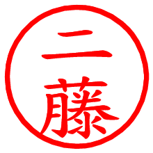 [朱肉の色]を選び、入力窓に“二藤”と入力して[生成]ボタンを押すと、印影が更新され、リンクから電子印鑑(デジタル印影)がダウンロードできます。 電子印鑑「二藤」の作り方文字表示が変なときや、文字バランスが悪いときは[字形切替]のチェックボックスでON/OFFを切り替え[生成]しなおしてください。 生成される画像は通常の印影「二藤.png」と、にじみを表現した少し太めの印影「二藤B.png」の背面透過PNG形式2種と、鮮明なPDF形式の印影「二藤.pdf」の計3種類です。 朱肉の微妙な色の違いを7色で表現しました。デフォルト(左端)は、JISが定めた朱肉の色のマンセル値(7.5R 5/14)をRGB値(217,66,54)に変換したものになっています。 「電子透かし」にチェックを入れて[生成]ボタンを押すと、タイムスタンプを電子透かしとして埋め込んだセキュアな電子印鑑が作れます。詳細は別ページの「タイムスタンプと電子透かし」でご覧ください。 二藤さんの日付印が作れます。「日付スタンプメーカー」は、社内向けの書類に利用されることの多い日付印(データ印)が無料で作れるWebアプリケーションです。中段に日付が入り、上段と下段は、ともに8文字まで文字が入ります。 ![]() 古代文字で落款印が作れます。「落款スタンプメーカー」で作品を引き立たせる落款印が作れます。