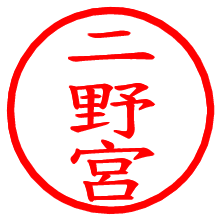 [朱肉の色]を選び、入力窓に“二野宮”と入力して[生成]ボタンを押すと、印影が更新され、リンクから電子印鑑(デジタル印影)がダウンロードできます。 電子印鑑「二野宮」の作り方文字表示が変なときや、文字バランスが悪いときは[字形切替]のチェックボックスでON/OFFを切り替え[生成]しなおしてください。 生成される画像は通常の印影「二野宮.png」と、にじみを表現した少し太めの印影「二野宮B.png」の背面透過PNG形式2種と、鮮明なPDF形式の印影「二野宮.pdf」の計3種類です。 朱肉の微妙な色の違いを7色で表現しました。デフォルト(左端)は、JISが定めた朱肉の色のマンセル値(7.5R 5/14)をRGB値(217,66,54)に変換したものになっています。 「電子透かし」にチェックを入れて[生成]ボタンを押すと、タイムスタンプを電子透かしとして埋め込んだセキュアな電子印鑑が作れます。詳細は別ページの「タイムスタンプと電子透かし」でご覧ください。 二野宮さんの日付印が作れます。「日付スタンプメーカー」は、社内向けの書類に利用されることの多い日付印(データ印)が無料で作れるWebアプリケーションです。中段に日付が入り、上段と下段は、ともに8文字まで文字が入ります。 ![]() 古代文字で落款印が作れます。「落款スタンプメーカー」で作品を引き立たせる落款印が作れます。
