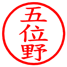 [朱肉の色]を選び、入力窓に“五位野”と入力して[生成]ボタンを押すと、印影が更新され、リンクから電子印鑑(デジタル印影)がダウンロードできます。 電子印鑑「五位野」の作り方文字表示が変なときや、文字バランスが悪いときは[字形切替]のチェックボックスでON/OFFを切り替え[生成]しなおしてください。 生成される画像は通常の印影「五位野.png」と、にじみを表現した少し太めの印影「五位野B.png」の背面透過PNG形式2種と、鮮明なPDF形式の印影「五位野.pdf」の計3種類です。 朱肉の微妙な色の違いを7色で表現しました。デフォルト(左端)は、JISが定めた朱肉の色のマンセル値(7.5R 5/14)をRGB値(217,66,54)に変換したものになっています。 「電子透かし」にチェックを入れて[生成]ボタンを押すと、タイムスタンプを電子透かしとして埋め込んだセキュアな電子印鑑が作れます。詳細は別ページの「タイムスタンプと電子透かし」でご覧ください。 五位野さんの日付印が作れます。「日付スタンプメーカー」は、社内向けの書類に利用されることの多い日付印(データ印)が無料で作れるWebアプリケーションです。中段に日付が入り、上段と下段は、ともに8文字まで文字が入ります。 ![]() 古代文字で落款印が作れます。「落款スタンプメーカー」で作品を引き立たせる落款印が作れます。