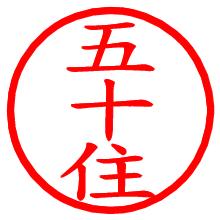 [朱肉の色]を選び、入力窓に“五十住”と入力して[生成]ボタンを押すと、印影が更新され、リンクから電子印鑑(デジタル印影)がダウンロードできます。 電子印鑑「五十住」の作り方文字表示が変なときや、文字バランスが悪いときは[字形切替]のチェックボックスでON/OFFを切り替え[生成]しなおしてください。 生成される画像は通常の印影「五十住.png」と、にじみを表現した少し太めの印影「五十住B.png」の背面透過PNG形式2種と、鮮明なPDF形式の印影「五十住.pdf」の計3種類です。 朱肉の微妙な色の違いを7色で表現しました。デフォルト(左端)は、JISが定めた朱肉の色のマンセル値(7.5R 5/14)をRGB値(217,66,54)に変換したものになっています。 「電子透かし」にチェックを入れて[生成]ボタンを押すと、タイムスタンプを電子透かしとして埋め込んだセキュアな電子印鑑が作れます。詳細は別ページの「タイムスタンプと電子透かし」でご覧ください。 五十住さんの日付印が作れます。「日付スタンプメーカー」は、社内向けの書類に利用されることの多い日付印(データ印)が無料で作れるWebアプリケーションです。中段に日付が入り、上段と下段は、ともに8文字まで文字が入ります。 ![]() 古代文字で落款印が作れます。「落款スタンプメーカー」で作品を引き立たせる落款印が作れます。