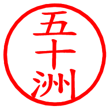 [朱肉の色]を選び、入力窓に“五十洲”と入力して[生成]ボタンを押すと、印影が更新され、リンクから電子印鑑(デジタル印影)がダウンロードできます。 電子印鑑「五十洲」の作り方文字表示が変なときや、文字バランスが悪いときは[字形切替]のチェックボックスでON/OFFを切り替え[生成]しなおしてください。 生成される画像は通常の印影「五十洲.png」と、にじみを表現した少し太めの印影「五十洲B.png」の背面透過PNG形式2種と、鮮明なPDF形式の印影「五十洲.pdf」の計3種類です。 朱肉の微妙な色の違いを7色で表現しました。デフォルト(左端)は、JISが定めた朱肉の色のマンセル値(7.5R 5/14)をRGB値(217,66,54)に変換したものになっています。 「電子透かし」にチェックを入れて[生成]ボタンを押すと、タイムスタンプを電子透かしとして埋め込んだセキュアな電子印鑑が作れます。詳細は別ページの「タイムスタンプと電子透かし」でご覧ください。 五十洲さんの日付印が作れます。「日付スタンプメーカー」は、社内向けの書類に利用されることの多い日付印(データ印)が無料で作れるWebアプリケーションです。中段に日付が入り、上段と下段は、ともに8文字まで文字が入ります。 ![]() 古代文字で落款印が作れます。「落款スタンプメーカー」で作品を引き立たせる落款印が作れます。