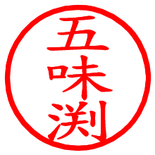 [朱肉の色]を選び、入力窓に“五味渕”と入力して[生成]ボタンを押すと、印影が更新され、リンクから電子印鑑(デジタル印影)がダウンロードできます。 電子印鑑「五味渕」の作り方文字表示が変なときや、文字バランスが悪いときは[字形切替]のチェックボックスでON/OFFを切り替え[生成]しなおしてください。 生成される画像は通常の印影「五味渕.png」と、にじみを表現した少し太めの印影「五味渕B.png」の背面透過PNG形式2種と、鮮明なPDF形式の印影「五味渕.pdf」の計3種類です。 朱肉の微妙な色の違いを7色で表現しました。デフォルト(左端)は、JISが定めた朱肉の色のマンセル値(7.5R 5/14)をRGB値(217,66,54)に変換したものになっています。 「電子透かし」にチェックを入れて[生成]ボタンを押すと、タイムスタンプを電子透かしとして埋め込んだセキュアな電子印鑑が作れます。詳細は別ページの「タイムスタンプと電子透かし」でご覧ください。 五味渕さんの日付印が作れます。「日付スタンプメーカー」は、社内向けの書類に利用されることの多い日付印(データ印)が無料で作れるWebアプリケーションです。中段に日付が入り、上段と下段は、ともに8文字まで文字が入ります。 ![]() 古代文字で落款印が作れます。「落款スタンプメーカー」で作品を引き立たせる落款印が作れます。