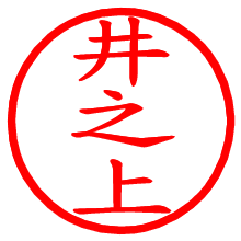 [朱肉の色]を選び、入力窓に“井之上”と入力して[生成]ボタンを押すと、印影が更新され、リンクから電子印鑑(デジタル印影)がダウンロードできます。 電子印鑑「井之上」の作り方文字表示が変なときや、文字バランスが悪いときは[字形切替]のチェックボックスでON/OFFを切り替え[生成]しなおしてください。 生成される画像は通常の印影「井之上.png」と、にじみを表現した少し太めの印影「井之上B.png」の背面透過PNG形式2種と、鮮明なPDF形式の印影「井之上.pdf」の計3種類です。 朱肉の微妙な色の違いを7色で表現しました。デフォルト(左端)は、JISが定めた朱肉の色のマンセル値(7.5R 5/14)をRGB値(217,66,54)に変換したものになっています。 「電子透かし」にチェックを入れて[生成]ボタンを押すと、タイムスタンプを電子透かしとして埋め込んだセキュアな電子印鑑が作れます。詳細は別ページの「タイムスタンプと電子透かし」でご覧ください。 井之上さんの日付印が作れます。「日付スタンプメーカー」は、社内向けの書類に利用されることの多い日付印(データ印)が無料で作れるWebアプリケーションです。中段に日付が入り、上段と下段は、ともに8文字まで文字が入ります。 ![]() 古代文字で落款印が作れます。「落款スタンプメーカー」で作品を引き立たせる落款印が作れます。