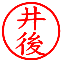 [朱肉の色]を選び、入力窓に“井後”と入力して[生成]ボタンを押すと、印影が更新され、リンクから電子印鑑(デジタル印影)がダウンロードできます。 電子印鑑「井後」の作り方文字表示が変なときや、文字バランスが悪いときは[字形切替]のチェックボックスでON/OFFを切り替え[生成]しなおしてください。 生成される画像は通常の印影「井後.png」と、にじみを表現した少し太めの印影「井後B.png」の背面透過PNG形式2種と、鮮明なPDF形式の印影「井後.pdf」の計3種類です。 朱肉の微妙な色の違いを7色で表現しました。デフォルト(左端)は、JISが定めた朱肉の色のマンセル値(7.5R 5/14)をRGB値(217,66,54)に変換したものになっています。 「電子透かし」にチェックを入れて[生成]ボタンを押すと、タイムスタンプを電子透かしとして埋め込んだセキュアな電子印鑑が作れます。詳細は別ページの「タイムスタンプと電子透かし」でご覧ください。 井後さんの日付印が作れます。「日付スタンプメーカー」は、社内向けの書類に利用されることの多い日付印(データ印)が無料で作れるWebアプリケーションです。中段に日付が入り、上段と下段は、ともに8文字まで文字が入ります。 ![]() 古代文字で落款印が作れます。「落款スタンプメーカー」で作品を引き立たせる落款印が作れます。