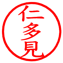 [朱肉の色]を選び、入力窓に“仁多見”と入力して[生成]ボタンを押すと、印影が更新され、リンクから電子印鑑(デジタル印影)がダウンロードできます。 電子印鑑「仁多見」の作り方文字表示が変なときや、文字バランスが悪いときは[字形切替]のチェックボックスでON/OFFを切り替え[生成]しなおしてください。 生成される画像は通常の印影「仁多見.png」と、にじみを表現した少し太めの印影「仁多見B.png」の背面透過PNG形式2種と、鮮明なPDF形式の印影「仁多見.pdf」の計3種類です。 朱肉の微妙な色の違いを7色で表現しました。デフォルト(左端)は、JISが定めた朱肉の色のマンセル値(7.5R 5/14)をRGB値(217,66,54)に変換したものになっています。 「電子透かし」にチェックを入れて[生成]ボタンを押すと、タイムスタンプを電子透かしとして埋め込んだセキュアな電子印鑑が作れます。詳細は別ページの「タイムスタンプと電子透かし」でご覧ください。 仁多見さんの日付印が作れます。「日付スタンプメーカー」は、社内向けの書類に利用されることの多い日付印(データ印)が無料で作れるWebアプリケーションです。中段に日付が入り、上段と下段は、ともに8文字まで文字が入ります。 ![]() 古代文字で落款印が作れます。「落款スタンプメーカー」で作品を引き立たせる落款印が作れます。