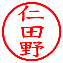 [朱肉の色]を選び、入力窓に“仁田野”と入力して[生成]ボタンを押すと、印影が更新され、リンクから電子印鑑(デジタル印影)がダウンロードできます。 電子印鑑「仁田野」の作り方文字表示が変なときや、文字バランスが悪いときは[字形切替]のチェックボックスでON/OFFを切り替え[生成]しなおしてください。 生成される画像は通常の印影「仁田野.png」と、にじみを表現した少し太めの印影「仁田野B.png」の背面透過PNG形式2種と、鮮明なPDF形式の印影「仁田野.pdf」の計3種類です。 朱肉の微妙な色の違いを7色で表現しました。デフォルト(左端)は、JISが定めた朱肉の色のマンセル値(7.5R 5/14)をRGB値(217,66,54)に変換したものになっています。 「電子透かし」にチェックを入れて[生成]ボタンを押すと、タイムスタンプを電子透かしとして埋め込んだセキュアな電子印鑑が作れます。詳細は別ページの「タイムスタンプと電子透かし」でご覧ください。 仁田野さんの日付印が作れます。「日付スタンプメーカー」は、社内向けの書類に利用されることの多い日付印(データ印)が無料で作れるWebアプリケーションです。中段に日付が入り、上段と下段は、ともに8文字まで文字が入ります。 ![]() 古代文字で落款印が作れます。「落款スタンプメーカー」で作品を引き立たせる落款印が作れます。