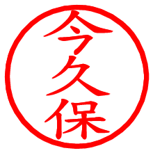 [朱肉の色]を選び、入力窓に“今久保”と入力して[生成]ボタンを押すと、印影が更新され、リンクから電子印鑑(デジタル印影)がダウンロードできます。 電子印鑑「今久保」の作り方文字表示が変なときや、文字バランスが悪いときは[字形切替]のチェックボックスでON/OFFを切り替え[生成]しなおしてください。 生成される画像は通常の印影「今久保.png」と、にじみを表現した少し太めの印影「今久保B.png」の背面透過PNG形式2種と、鮮明なPDF形式の印影「今久保.pdf」の計3種類です。 朱肉の微妙な色の違いを7色で表現しました。デフォルト(左端)は、JISが定めた朱肉の色のマンセル値(7.5R 5/14)をRGB値(217,66,54)に変換したものになっています。 「電子透かし」にチェックを入れて[生成]ボタンを押すと、タイムスタンプを透かしとして埋め込んだセキュアな電子印鑑が作れます。詳細は別ページの「電子透かしとタイムスタンプ」でご覧ください。  今久保さんの日付印が作れます。「日付スタンプメーカー」は、社内向けの書類に利用されることの多い日付印(データ印)が無料で作れるWebアプリケーションです。中段に日付が入り、上段と下段は、ともに8文字まで文字が入ります。 ![]()  古代文字で落款印が作れます。「落款スタンプメーカー」で作品を引き立たせる落款印が作れます。