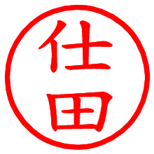 [朱肉の色]を選び、入力窓に“仕田”と入力して[生成]ボタンを押すと、印影が更新され、リンクから電子印鑑(デジタル印影)がダウンロードできます。 電子印鑑「仕田」の作り方文字表示が変なときや、文字バランスが悪いときは[字形切替]のチェックボックスでON/OFFを切り替え[生成]しなおしてください。 生成される画像は通常の印影「仕田.png」と、にじみを表現した少し太めの印影「仕田B.png」の背面透過PNG形式2種と、鮮明なPDF形式の印影「仕田.pdf」の計3種類です。 朱肉の微妙な色の違いを7色で表現しました。デフォルト(左端)は、JISが定めた朱肉の色のマンセル値(7.5R 5/14)をRGB値(217,66,54)に変換したものになっています。 「電子透かし」にチェックを入れて[生成]ボタンを押すと、タイムスタンプを電子透かしとして埋め込んだセキュアな電子印鑑が作れます。詳細は別ページの「タイムスタンプと電子透かし」でご覧ください。 仕田さんの日付印が作れます。「日付スタンプメーカー」は、社内向けの書類に利用されることの多い日付印(データ印)が無料で作れるWebアプリケーションです。中段に日付が入り、上段と下段は、ともに8文字まで文字が入ります。 ![]() 古代文字で落款印が作れます。「落款スタンプメーカー」で作品を引き立たせる落款印が作れます。