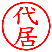 [朱肉の色]を選び、入力窓に“代居”と入力して[生成]ボタンを押すと、印影が更新され、リンクから電子印鑑(デジタル印影)がダウンロードできます。 電子印鑑「代居」の作り方文字表示が変なときや、文字バランスが悪いときは[字形切替]のチェックボックスでON/OFFを切り替え[生成]しなおしてください。 生成される画像は通常の印影「代居.png」と、にじみを表現した少し太めの印影「代居B.png」の背面透過PNG形式2種と、鮮明なPDF形式の印影「代居.pdf」の計3種類です。 朱肉の微妙な色の違いを7色で表現しました。デフォルト(左端)は、JISが定めた朱肉の色のマンセル値(7.5R 5/14)をRGB値(217,66,54)に変換したものになっています。 「電子透かし」にチェックを入れて[生成]ボタンを押すと、タイムスタンプを電子透かしとして埋め込んだセキュアな電子印鑑が作れます。詳細は別ページの「タイムスタンプと電子透かし」でご覧ください。 代居さんの日付印が作れます。「日付スタンプメーカー」は、社内向けの書類に利用されることの多い日付印(データ印)が無料で作れるWebアプリケーションです。中段に日付が入り、上段と下段は、ともに8文字まで文字が入ります。 ![]() 古代文字で落款印が作れます。「落款スタンプメーカー」で作品を引き立たせる落款印が作れます。