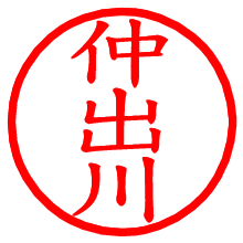 [朱肉の色]を選び、入力窓に“仲出川”と入力して[生成]ボタンを押すと、印影が更新され、リンクから電子印鑑(デジタル印影)がダウンロードできます。 電子印鑑「仲出川」の作り方文字表示が変なときや、文字バランスが悪いときは[字形切替]のチェックボックスでON/OFFを切り替え[生成]しなおしてください。 生成される画像は通常の印影「仲出川.png」と、にじみを表現した少し太めの印影「仲出川B.png」の背面透過PNG形式2種と、鮮明なPDF形式の印影「仲出川.pdf」の計3種類です。 朱肉の微妙な色の違いを7色で表現しました。デフォルト(左端)は、JISが定めた朱肉の色のマンセル値(7.5R 5/14)をRGB値(217,66,54)に変換したものになっています。 「電子透かし」にチェックを入れて[生成]ボタンを押すと、タイムスタンプを透かしとして埋め込んだセキュアな電子印鑑が作れます。詳細は別ページの「電子透かしとタイムスタンプ」でご覧ください。 仲出川さんの日付印が作れます。「日付スタンプメーカー」は、社内向けの書類に利用されることの多い日付印(データ印)が無料で作れるWebアプリケーションです。中段に日付が入り、上段と下段は、ともに8文字まで文字が入ります。 ![]() 古代文字で落款印が作れます。「落款スタンプメーカー」で作品を引き立たせる落款印が作れます。