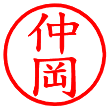 [朱肉の色]を選び、入力窓に“仲岡”と入力して[生成]ボタンを押すと、印影が更新され、リンクから電子印鑑(デジタル印影)がダウンロードできます。 電子印鑑「仲岡」の作り方文字表示が変なときや、文字バランスが悪いときは[字形切替]のチェックボックスでON/OFFを切り替え[生成]しなおしてください。 生成される画像は通常の印影「仲岡.png」と、にじみを表現した少し太めの印影「仲岡B.png」の背面透過PNG形式2種と、鮮明なPDF形式の印影「仲岡.pdf」の計3種類です。 朱肉の微妙な色の違いを7色で表現しました。デフォルト(左端)は、JISが定めた朱肉の色のマンセル値(7.5R 5/14)をRGB値(217,66,54)に変換したものになっています。 「電子透かし」にチェックを入れて[生成]ボタンを押すと、タイムスタンプを電子透かしとして埋め込んだセキュアな電子印鑑が作れます。詳細は別ページの「タイムスタンプと電子透かし」でご覧ください。 仲岡さんの日付印が作れます。「日付スタンプメーカー」は、社内向けの書類に利用されることの多い日付印(データ印)が無料で作れるWebアプリケーションです。中段に日付が入り、上段と下段は、ともに8文字まで文字が入ります。 ![]() 古代文字で落款印が作れます。「落款スタンプメーカー」で作品を引き立たせる落款印が作れます。