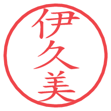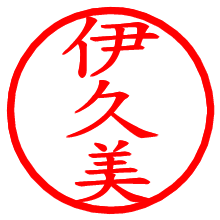 [朱肉の色]を選び、入力窓に“伊久美”と入力して[生成]ボタンを押すと、印影が更新され、リンクから電子印鑑(デジタル印影)がダウンロードできます。 電子印鑑「伊久美」の作り方文字表示が変なときや、文字バランスが悪いときは[字形切替]のチェックボックスでON/OFFを切り替え[生成]しなおしてください。 生成される画像は通常の印影「伊久美.png」と、にじみを表現した少し太めの印影「伊久美B.png」の背面透過PNG形式2種と、鮮明なPDF形式の印影「伊久美.pdf」の計3種類です。 朱肉の微妙な色の違いを7色で表現しました。デフォルト(左端)は、JISが定めた朱肉の色のマンセル値(7.5R 5/14)をRGB値(217,66,54)に変換したものになっています。 「電子透かし」にチェックを入れて[生成]ボタンを押すと、タイムスタンプを電子透かしとして埋め込んだセキュアな電子印鑑が作れます。詳細は別ページの「タイムスタンプと電子透かし」でご覧ください。 伊久美さんの日付印が作れます。「日付スタンプメーカー」は、社内向けの書類に利用されることの多い日付印(データ印)が無料で作れるWebアプリケーションです。中段に日付が入り、上段と下段は、ともに8文字まで文字が入ります。 ![]() 古代文字で落款印が作れます。「落款スタンプメーカー」で作品を引き立たせる落款印が作れます。