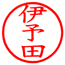 [朱肉の色]を選び、入力窓に“伊予田”と入力して[生成]ボタンを押すと、印影が更新され、リンクから電子印鑑(デジタル印影)がダウンロードできます。 電子印鑑「伊予田」の作り方文字表示が変なときや、文字バランスが悪いときは[字形切替]のチェックボックスでON/OFFを切り替え[生成]しなおしてください。 生成される画像は通常の印影「伊予田.png」と、にじみを表現した少し太めの印影「伊予田B.png」の背面透過PNG形式2種と、鮮明なPDF形式の印影「伊予田.pdf」の計3種類です。 朱肉の微妙な色の違いを7色で表現しました。デフォルト(左端)は、JISが定めた朱肉の色のマンセル値(7.5R 5/14)をRGB値(217,66,54)に変換したものになっています。 「電子透かし」にチェックを入れて[生成]ボタンを押すと、タイムスタンプを電子透かしとして埋め込んだセキュアな電子印鑑が作れます。詳細は別ページの「タイムスタンプと電子透かし」でご覧ください。 伊予田さんの日付印が作れます。「日付スタンプメーカー」は、社内向けの書類に利用されることの多い日付印(データ印)が無料で作れるWebアプリケーションです。中段に日付が入り、上段と下段は、ともに8文字まで文字が入ります。 ![]() 古代文字で落款印が作れます。「落款スタンプメーカー」で作品を引き立たせる落款印が作れます。