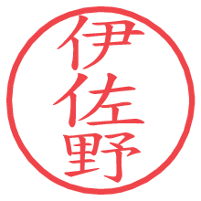 [朱肉の色]を選び、入力窓に“伊佐野”と入力して[生成]ボタンを押すと、印影が更新され、リンクから電子印鑑(デジタル印影)がダウンロードできます。 電子印鑑「伊佐野」の作り方文字表示が変なときや、文字バランスが悪いときは[字形切替]のチェックボックスでON/OFFを切り替え[生成]しなおしてください。 生成される画像は通常の印影「伊佐野.png」と、にじみを表現した少し太めの印影「伊佐野B.png」の背面透過PNG形式2種と、鮮明なPDF形式の印影「伊佐野.pdf」の計3種類です。 朱肉の微妙な色の違いを7色で表現しました。デフォルト(左端)は、JISが定めた朱肉の色のマンセル値(7.5R 5/14)をRGB値(217,66,54)に変換したものになっています。 「電子透かし」にチェックを入れて[生成]ボタンを押すと、タイムスタンプを電子透かしとして埋め込んだセキュアな電子印鑑が作れます。詳細は別ページの「タイムスタンプと電子透かし」でご覧ください。 伊佐野さんの日付印が作れます。「日付スタンプメーカー」は、社内向けの書類に利用されることの多い日付印(データ印)が無料で作れるWebアプリケーションです。中段に日付が入り、上段と下段は、ともに8文字まで文字が入ります。 ![]() 古代文字で落款印が作れます。「落款スタンプメーカー」で作品を引き立たせる落款印が作れます。