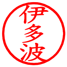 [朱肉の色]を選び、入力窓に“伊多波”と入力して[生成]ボタンを押すと、印影が更新され、リンクから電子印鑑(デジタル印影)がダウンロードできます。 電子印鑑「伊多波」の作り方文字表示が変なときや、文字バランスが悪いときは[字形切替]のチェックボックスでON/OFFを切り替え[生成]しなおしてください。 生成される画像は通常の印影「伊多波.png」と、にじみを表現した少し太めの印影「伊多波B.png」の背面透過PNG形式2種と、鮮明なPDF形式の印影「伊多波.pdf」の計3種類です。 朱肉の微妙な色の違いを7色で表現しました。デフォルト(左端)は、JISが定めた朱肉の色のマンセル値(7.5R 5/14)をRGB値(217,66,54)に変換したものになっています。 「電子透かし」にチェックを入れて[生成]ボタンを押すと、タイムスタンプを電子透かしとして埋め込んだセキュアな電子印鑑が作れます。詳細は別ページの「タイムスタンプと電子透かし」でご覧ください。 伊多波さんの日付印が作れます。「日付スタンプメーカー」は、社内向けの書類に利用されることの多い日付印(データ印)が無料で作れるWebアプリケーションです。中段に日付が入り、上段と下段は、ともに8文字まで文字が入ります。 ![]() 古代文字で落款印が作れます。「落款スタンプメーカー」で作品を引き立たせる落款印が作れます。