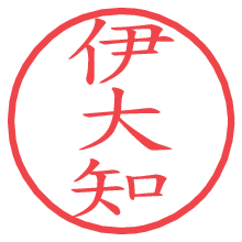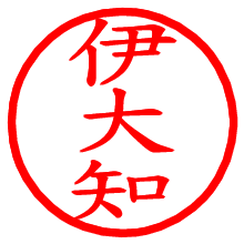 [朱肉の色]を選び、入力窓に“伊大知”と入力して[生成]ボタンを押すと、印影が更新され、リンクから電子印鑑(デジタル印影)がダウンロードできます。 電子印鑑「伊大知」の作り方文字表示が変なときや、文字バランスが悪いときは[字形切替]のチェックボックスでON/OFFを切り替え[生成]しなおしてください。 生成される画像は通常の印影「伊大知.png」と、にじみを表現した少し太めの印影「伊大知B.png」の背面透過PNG形式2種と、鮮明なPDF形式の印影「伊大知.pdf」の計3種類です。 朱肉の微妙な色の違いを7色で表現しました。デフォルト(左端)は、JISが定めた朱肉の色のマンセル値(7.5R 5/14)をRGB値(217,66,54)に変換したものになっています。 「電子透かし」にチェックを入れて[生成]ボタンを押すと、タイムスタンプを電子透かしとして埋め込んだセキュアな電子印鑑が作れます。詳細は別ページの「タイムスタンプと電子透かし」でご覧ください。 伊大知さんの日付印が作れます。「日付スタンプメーカー」は、社内向けの書類に利用されることの多い日付印(データ印)が無料で作れるWebアプリケーションです。中段に日付が入り、上段と下段は、ともに8文字まで文字が入ります。 ![]() 古代文字で落款印が作れます。「落款スタンプメーカー」で作品を引き立たせる落款印が作れます。