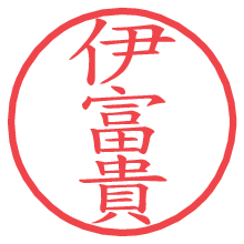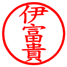 [朱肉の色]を選び、入力窓に“伊富貴”と入力して[生成]ボタンを押すと、印影が更新され、リンクから電子印鑑(デジタル印影)がダウンロードできます。 電子印鑑「伊富貴」の作り方文字表示が変なときや、文字バランスが悪いときは[字形切替]のチェックボックスでON/OFFを切り替え[生成]しなおしてください。 生成される画像は通常の印影「伊富貴.png」と、にじみを表現した少し太めの印影「伊富貴B.png」の背面透過PNG形式2種と、鮮明なPDF形式の印影「伊富貴.pdf」の計3種類です。 朱肉の微妙な色の違いを7色で表現しました。デフォルト(左端)は、JISが定めた朱肉の色のマンセル値(7.5R 5/14)をRGB値(217,66,54)に変換したものになっています。 「電子透かし」にチェックを入れて[生成]ボタンを押すと、タイムスタンプを電子透かしとして埋め込んだセキュアな電子印鑑が作れます。詳細は別ページの「タイムスタンプと電子透かし」でご覧ください。 伊富貴さんの日付印が作れます。「日付スタンプメーカー」は、社内向けの書類に利用されることの多い日付印(データ印)が無料で作れるWebアプリケーションです。中段に日付が入り、上段と下段は、ともに8文字まで文字が入ります。 ![]() 古代文字で落款印が作れます。「落款スタンプメーカー」で作品を引き立たせる落款印が作れます。