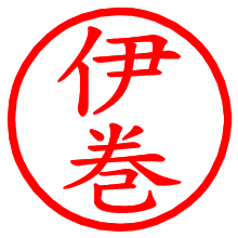 [朱肉の色]を選び、入力窓に“伊巻”と入力して[生成]ボタンを押すと、印影が更新され、リンクから電子印鑑(デジタル印影)がダウンロードできます。 電子印鑑「伊巻」の作り方文字表示が変なときや、文字バランスが悪いときは[字形切替]のチェックボックスでON/OFFを切り替え[生成]しなおしてください。 生成される画像は通常の印影「伊巻.png」と、にじみを表現した少し太めの印影「伊巻B.png」の背面透過PNG形式2種と、鮮明なPDF形式の印影「伊巻.pdf」の計3種類です。 朱肉の微妙な色の違いを7色で表現しました。デフォルト(左端)は、JISが定めた朱肉の色のマンセル値(7.5R 5/14)をRGB値(217,66,54)に変換したものになっています。 「電子透かし」にチェックを入れて[生成]ボタンを押すと、タイムスタンプを電子透かしとして埋め込んだセキュアな電子印鑑が作れます。詳細は別ページの「タイムスタンプと電子透かし」でご覧ください。 伊巻さんの日付印が作れます。「日付スタンプメーカー」は、社内向けの書類に利用されることの多い日付印(データ印)が無料で作れるWebアプリケーションです。中段に日付が入り、上段と下段は、ともに8文字まで文字が入ります。 ![]() 古代文字で落款印が作れます。「落款スタンプメーカー」で作品を引き立たせる落款印が作れます。