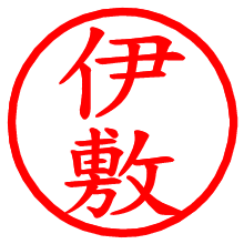 [朱肉の色]を選び、入力窓に“伊敷”と入力して[生成]ボタンを押すと、印影が更新され、リンクから電子印鑑(デジタル印影)がダウンロードできます。 電子印鑑「伊敷」の作り方文字表示が変なときや、文字バランスが悪いときは[字形切替]のチェックボックスでON/OFFを切り替え[生成]しなおしてください。 生成される画像は通常の印影「伊敷.png」と、にじみを表現した少し太めの印影「伊敷B.png」の背面透過PNG形式2種と、鮮明なPDF形式の印影「伊敷.pdf」の計3種類です。 朱肉の微妙な色の違いを7色で表現しました。デフォルト(左端)は、JISが定めた朱肉の色のマンセル値(7.5R 5/14)をRGB値(217,66,54)に変換したものになっています。 「電子透かし」にチェックを入れて[生成]ボタンを押すと、タイムスタンプを電子透かしとして埋め込んだセキュアな電子印鑑が作れます。詳細は別ページの「タイムスタンプと電子透かし」でご覧ください。 伊敷さんの日付印が作れます。「日付スタンプメーカー」は、社内向けの書類に利用されることの多い日付印(データ印)が無料で作れるWebアプリケーションです。中段に日付が入り、上段と下段は、ともに8文字まで文字が入ります。 ![]() 古代文字で落款印が作れます。「落款スタンプメーカー」で作品を引き立たせる落款印が作れます。