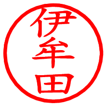 [朱肉の色]を選び、入力窓に“伊牟田”と入力して[生成]ボタンを押すと、印影が更新され、リンクから電子印鑑(デジタル印影)がダウンロードできます。 電子印鑑「伊牟田」の作り方文字表示が変なときや、文字バランスが悪いときは[字形切替]のチェックボックスでON/OFFを切り替え[生成]しなおしてください。 生成される画像は通常の印影「伊牟田.png」と、にじみを表現した少し太めの印影「伊牟田B.png」の背面透過PNG形式2種と、鮮明なPDF形式の印影「伊牟田.pdf」の計3種類です。 朱肉の微妙な色の違いを7色で表現しました。デフォルト(左端)は、JISが定めた朱肉の色のマンセル値(7.5R 5/14)をRGB値(217,66,54)に変換したものになっています。 「電子透かし」にチェックを入れて[生成]ボタンを押すと、タイムスタンプを電子透かしとして埋め込んだセキュアな電子印鑑が作れます。詳細は別ページの「タイムスタンプと電子透かし」でご覧ください。 伊牟田さんの日付印が作れます。「日付スタンプメーカー」は、社内向けの書類に利用されることの多い日付印(データ印)が無料で作れるWebアプリケーションです。中段に日付が入り、上段と下段は、ともに8文字まで文字が入ります。 ![]() 古代文字で落款印が作れます。「落款スタンプメーカー」で作品を引き立たせる落款印が作れます。